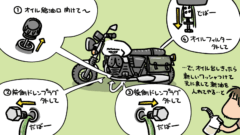 ゴールデンウィーク中の暇な時間を使って、MOTO GUZZI V7 STONE(以降「V7」)のオイル交換を行いました。ずっと「やんなきゃなあ」と思っていた整備なので、やっと手を付けることができてほっとしてます。