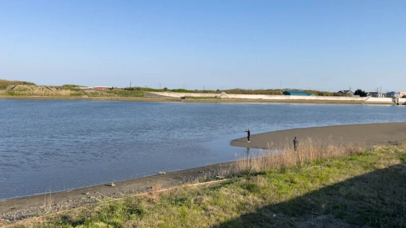 目当てのお店は閉まっていたので、九十九里有料道路の波乗りパーキングでパンケーキを食べて、一ノ宮川の河口周辺を「どんな釣り場があるかなあ」と小一時間お散歩です。