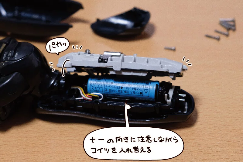 そしたら元の通りに組み直して、充電と動作チェックを行いましょう。