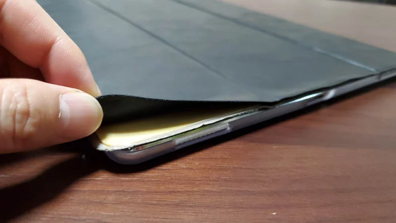 先日まで使っていたエレコム製カバーはこのボタン類がカバーの突起部分で押されるような構造になっていたんですけど、これがやたらと誤爆する仕様だったのです。ちょっと持ち方を変えると羽目合わせがずれてすぐスリープボタンが押される敏感仕様で辟易したものでした。ドライヤーの熱風でひん曲げたらマシになりましたけど、それでもやっぱり時々誤爆してた。