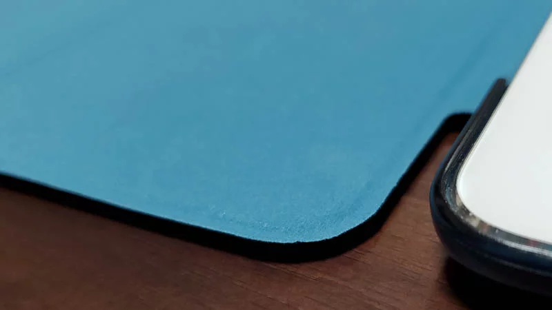 特にいけてないのが「スタンドにしようとすると折り曲げてる箇所の表地がぺろんと剥がれようとしてくる」ところで、その剥がれようとする力が折り曲げ方向に対する抵抗になってしまって、スタンド状態を維持してくれません。
