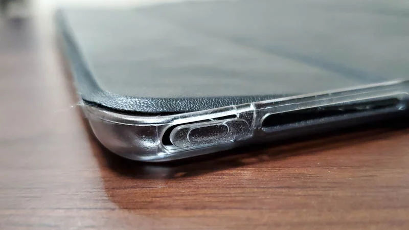 ポートやスピーカー部分は開口部が設けられて塞がないようになっているんですけど、ボタン類に関しても同様に開口部を設けて直接露出するようになっています。